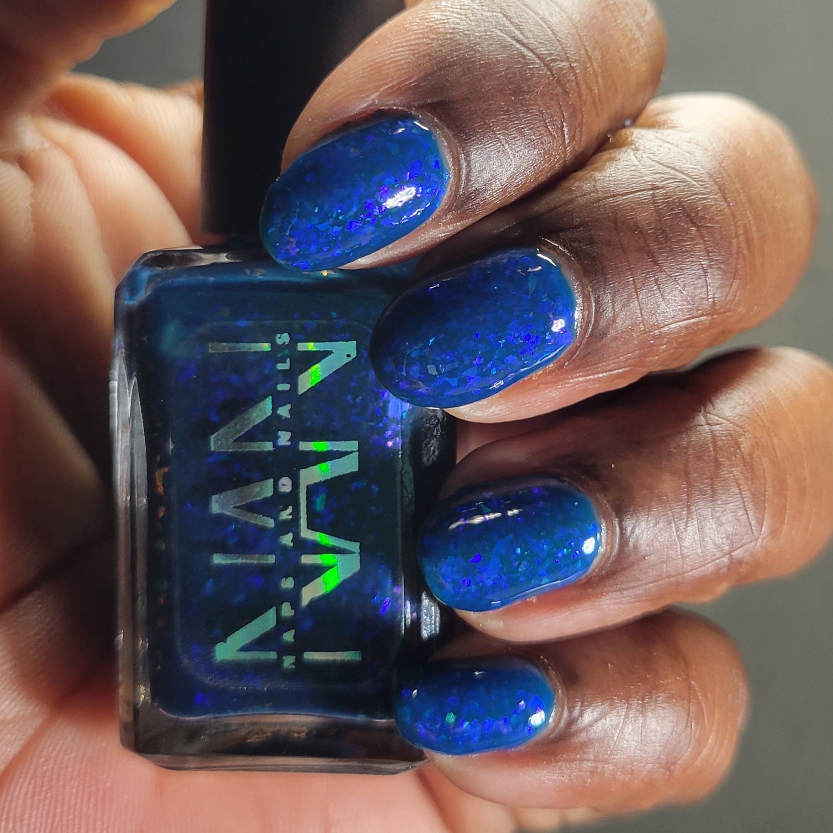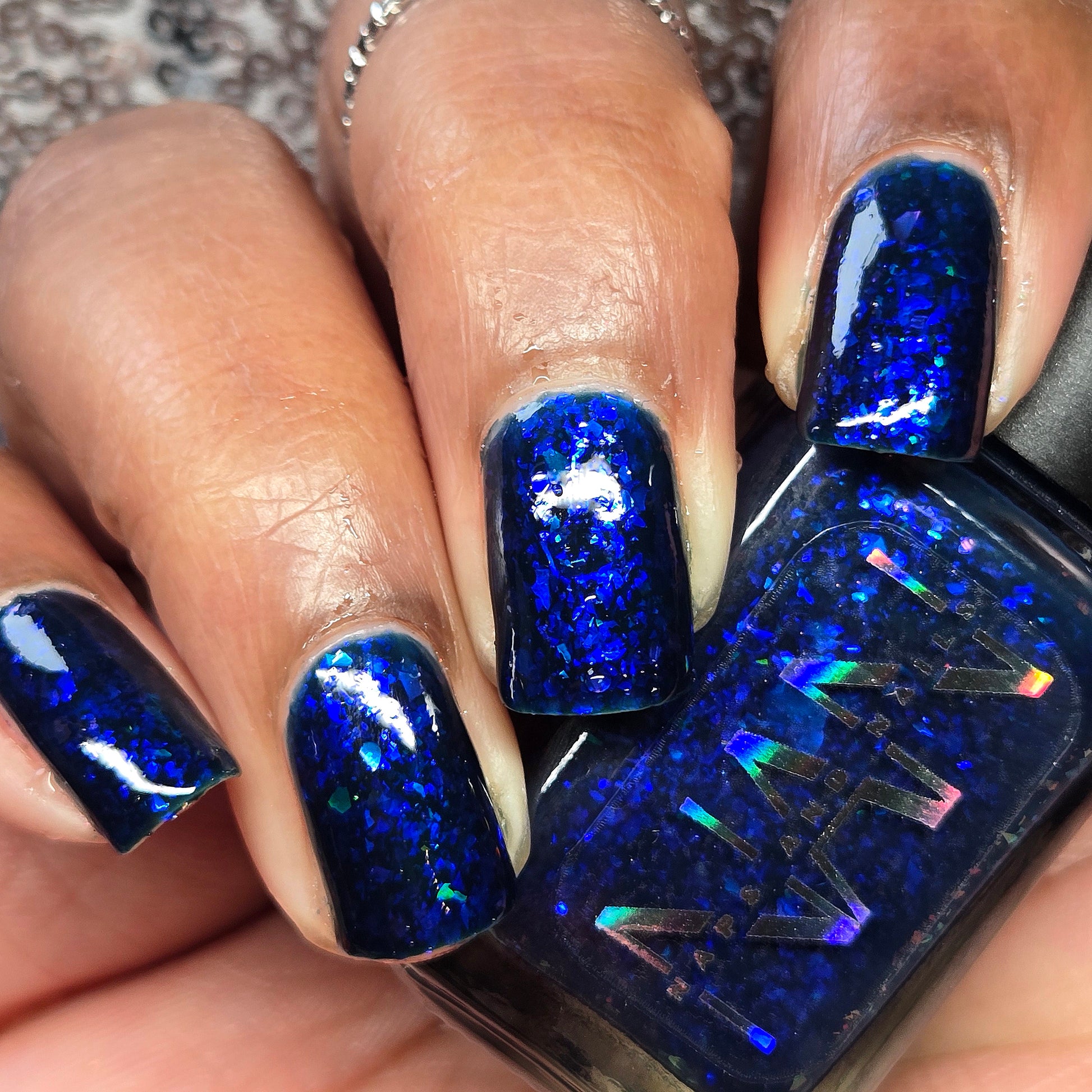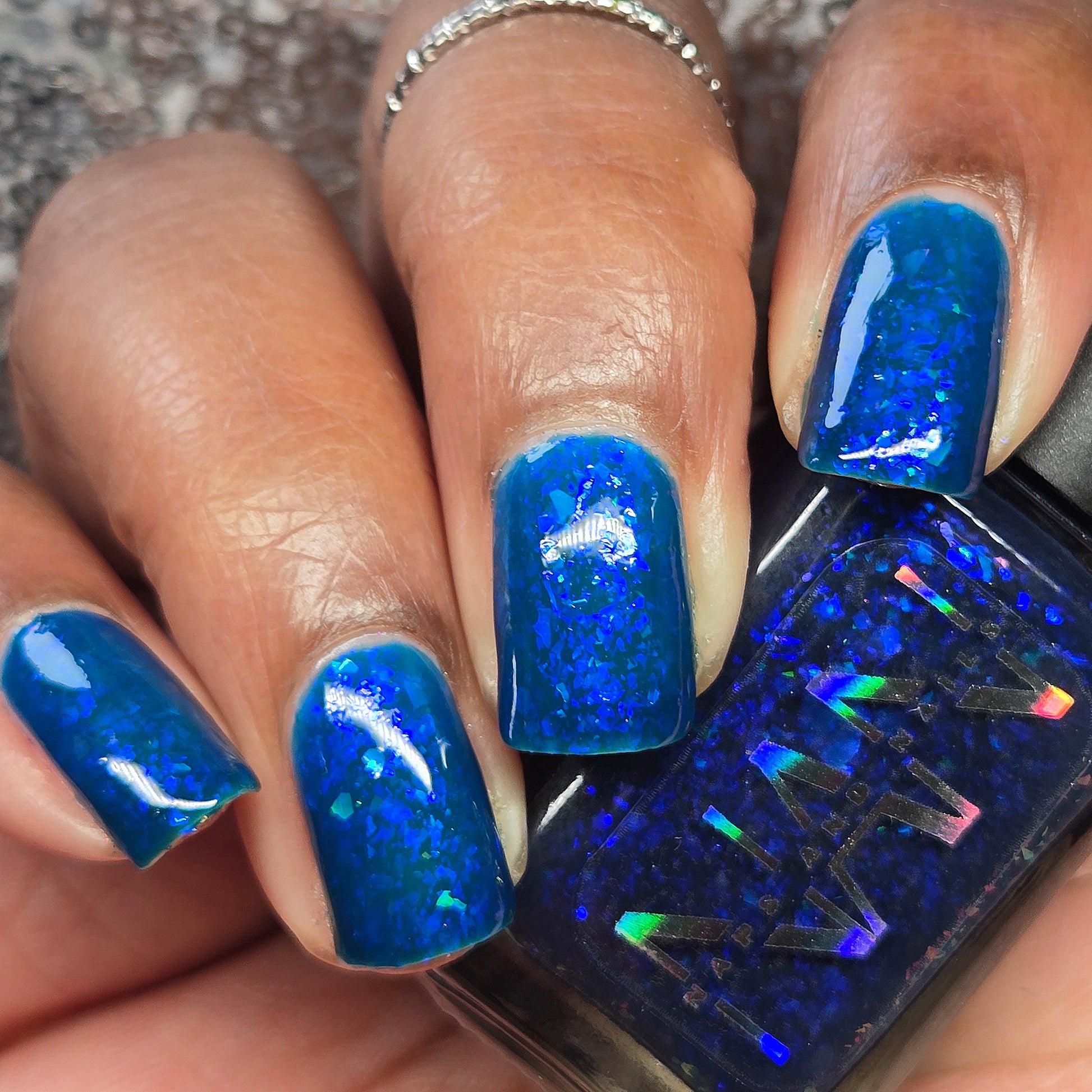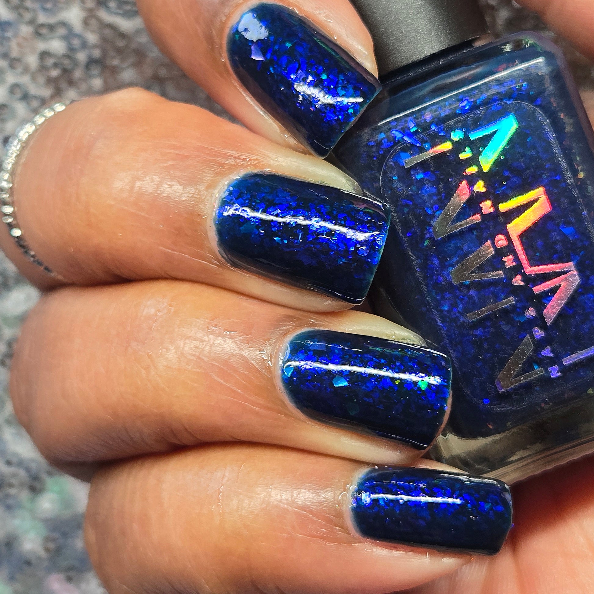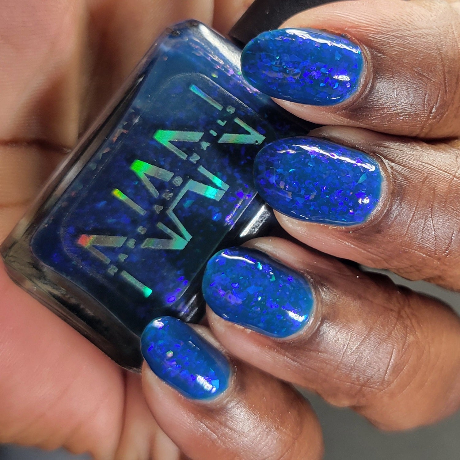 This thermal polish has a blue tone when warm to deep blue black when cold thermal with blue/purple shifting iridescent flakes.